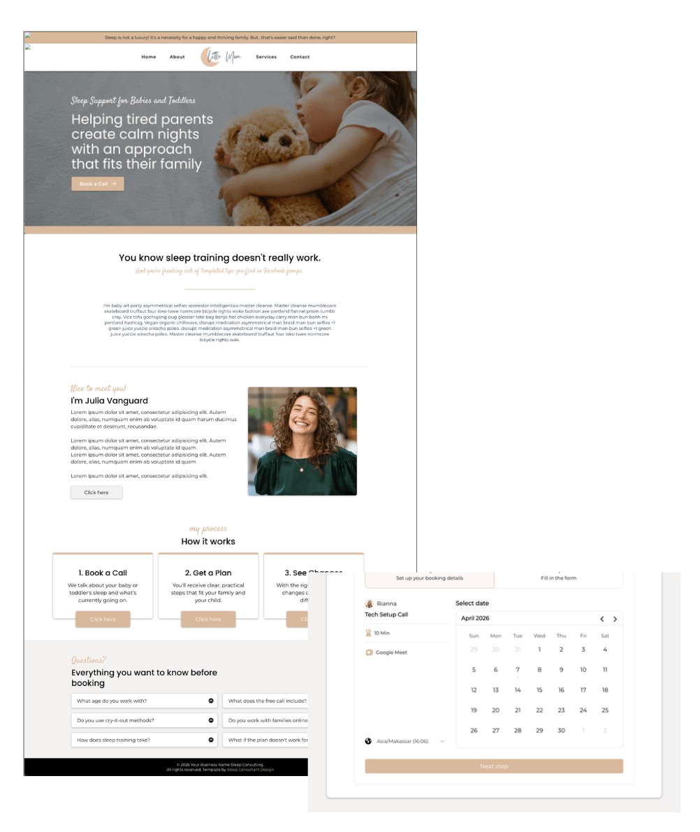 We're putting the finishing touches on something built specifically for sleep consultants — whether you just got certified or have been trying to figure it out for months, you'll go from scattered to fully set up, with a professional website, booking link, and client funnel live in less than 5 days, backed by ongoing support to help you keep growing.